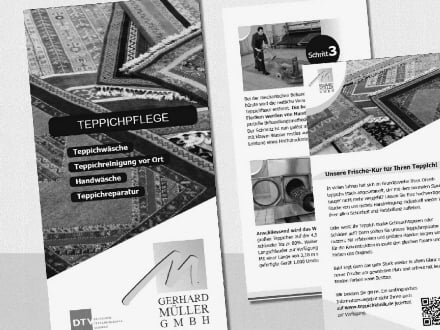 Die Firma Gerhard Müller aus dem südwestfälischen Siegen blickt auf mehr als 60 Jahre Firmengeschichte und hat im Laufe der Zeit ihre handwerkliche Tätigkeit auf die Polster- und Teppichreinigung erweitert. Das Aufgabengebiet umfasst heute die Teppichwäsche, das Waschen von Berber-, Tibeter- und Orientteppichen sowie die Lederpflege und ein großes Angebot an Bodenbelägen.